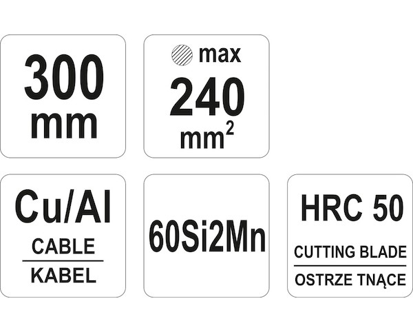 Štípací elektrikářské kleště pro Al a Cu vodiče a více žilové kabely do průměru 240 mm2. Nůžky jsou vhodné i pro stříhání hadic.