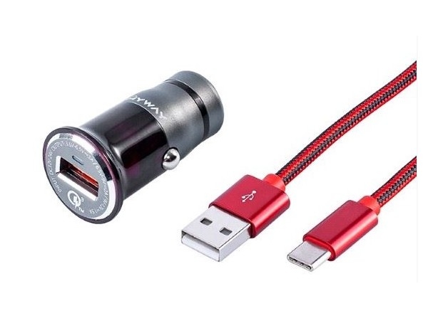 Nabíječka do auta 1xUSB + kabel USB TYP C