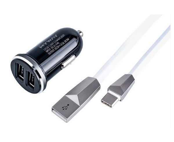 Nabíječka do auta 2xUSB + kabel USB TYP C