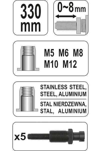 • Pro maticové nýty M5 / M6 / M8 / M10 / M12